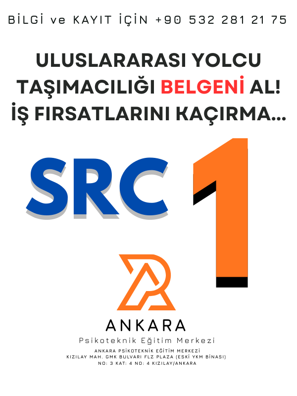 Src 1 Belgesi Uluslararası Yolcu Taşımacılığı faaliyetinde bulunan sürücülerin alması yasal olarak zorunlu bir belge türüdür. Sınır kapılarından geçecek olan otobüs sürücülerine Src 1 belgesi ile ülke sınırları dışına çıkışına izin verilir. ULUSLARARASI taşımacılık yapan herkesin sahip olması gereken bir belgedir.