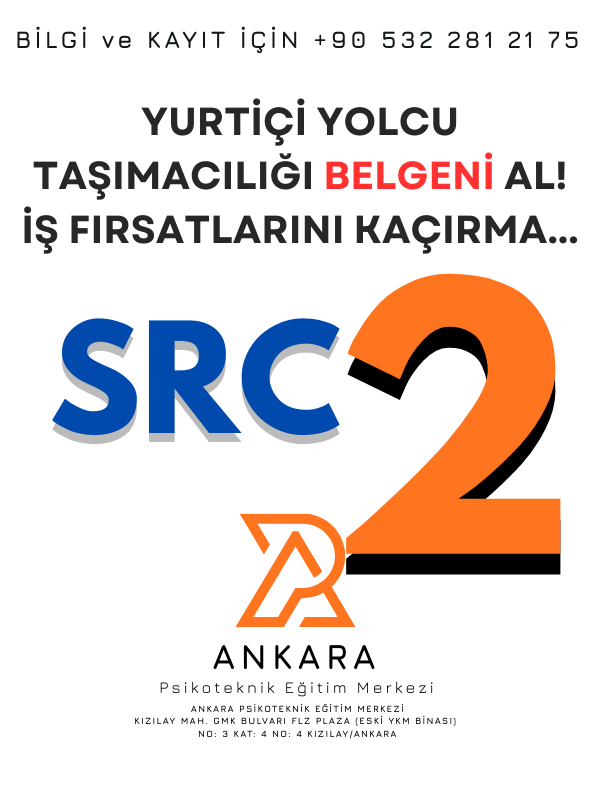 SRC 2 Belgesi Yurtiçi yolcu taşımacılığı amacıyla verilen bu belgesi; dolmuş, şehir içi ve şehirlerarası otobüs sürücüleri, personel taşımacılığı ya da okul servisi şoförleri ve taksiciler için gerekli bir belgedir. SRC 2 belgesi, TÜRKİYE sınırları dahilinde taşımacılık yapan herkesin sahip olması gereken bir belgedir.