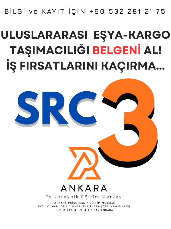 SRC 3 Belgesi Uluslararası yük taşımacılığı için gerekli olan bir belgedir olup , TÜRKİYE’de ve ULUSLARARASI arenada yük, eşya ve kargo taşımacılığı yapan tüm sürücülerin yanı sıra kamyon, çekici ve tır kullanan araç sürücüleri bu belgeye sahip olması ve bulundurması gerekmektedir.