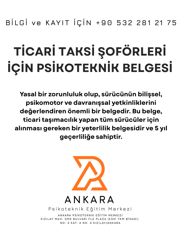 TİCARİ TAKSİ ŞÖFÖRLERİ İÇİN PSİKOTEKNİK BELGESİ